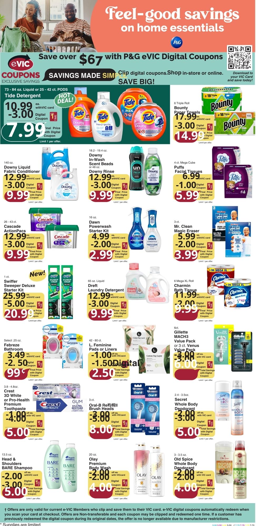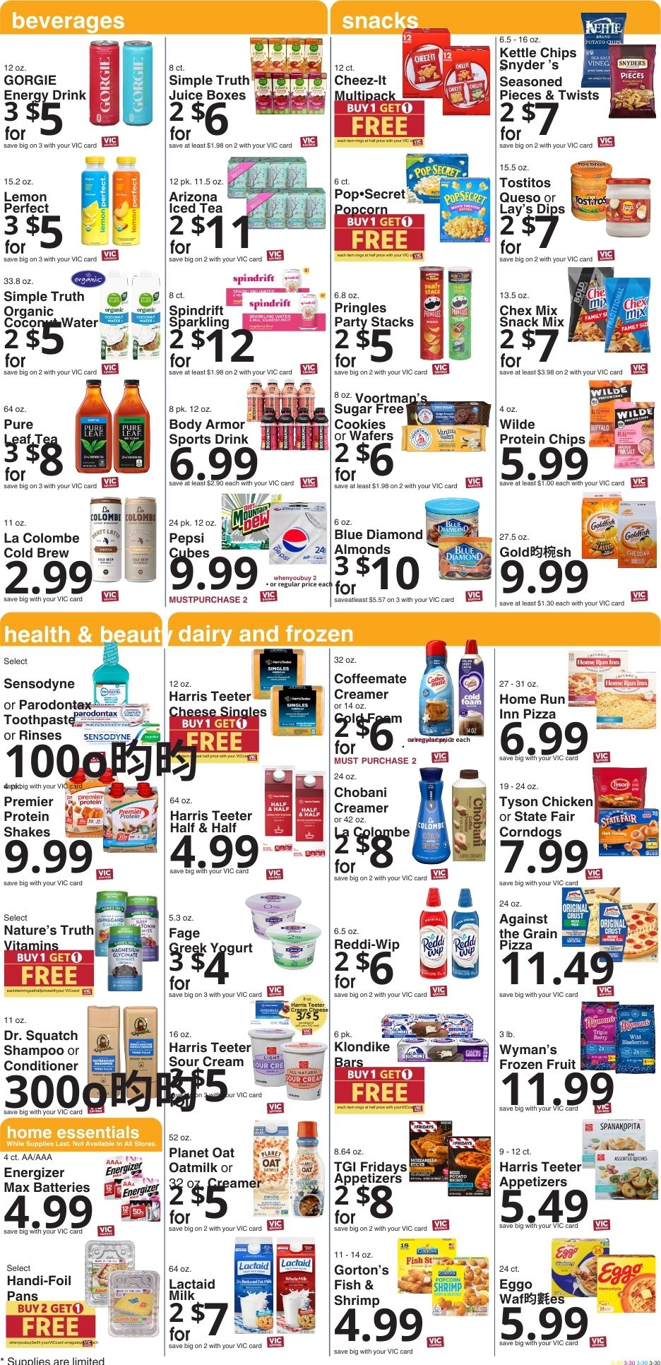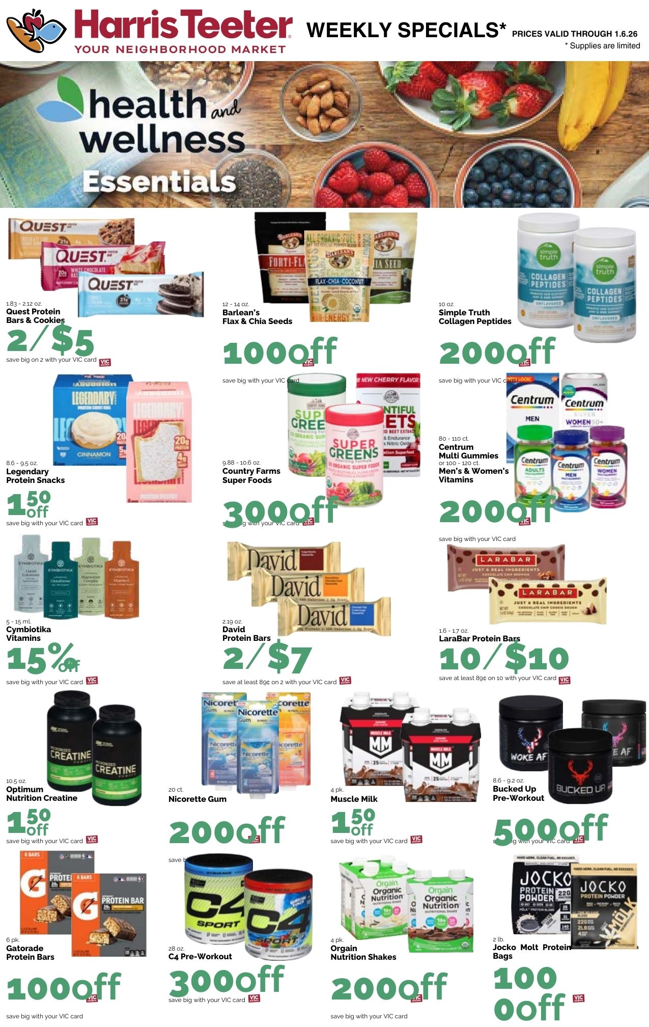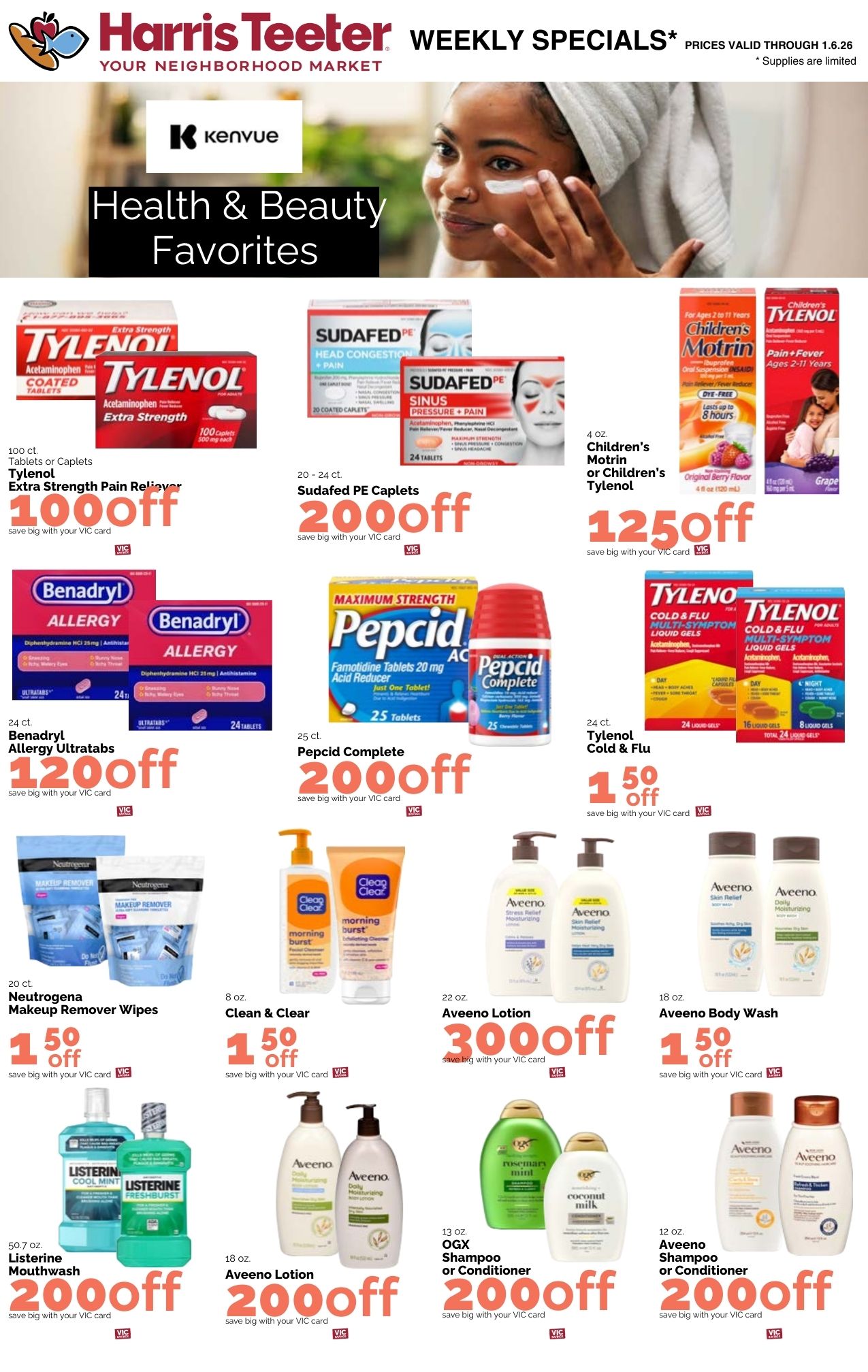 Digital coupons can be loaded to your VIC card on the Harris Teeter website or app. You just have to scan your card at the register to receive the savings.